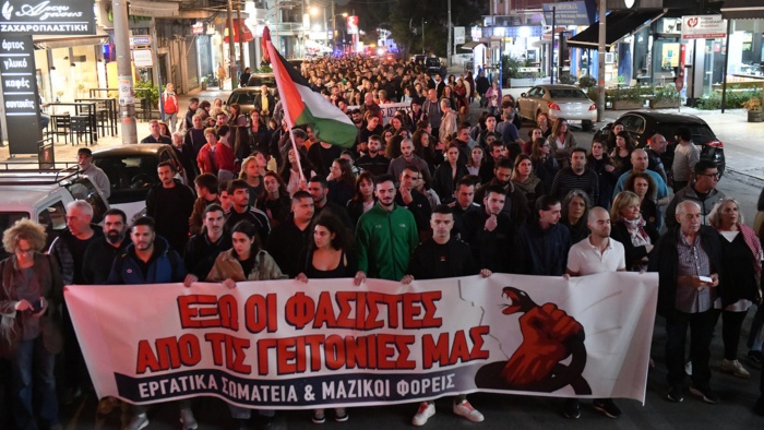On 1 November, dozens of labour unions and mass organizations from the north-west Athens neighbourhoods of Nea Ionia, Neo Heraklio, Nea Filadelfia and Metamorfosi organized a dynamic and massive anti-fascist rally in Neo Heraklio. Student associations also participated.