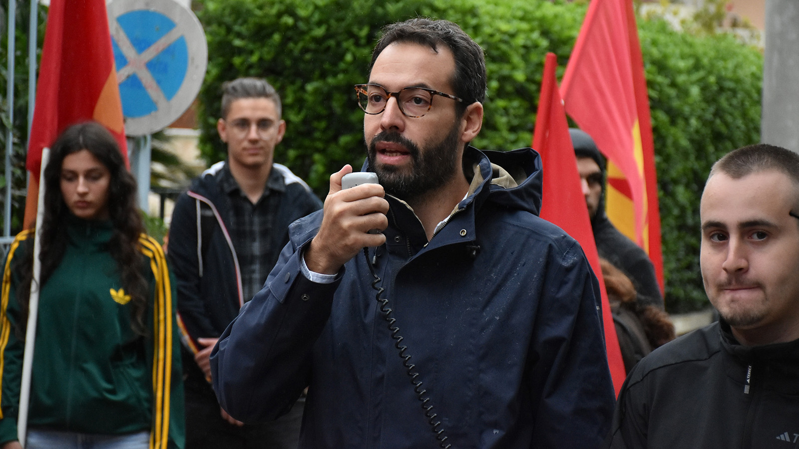 Lefteris Nikolaou-Alavanos, MEP of the KKE, delivered the KKE’s demarche to Ewa Pańczak, the Embassy’s Deputy Head of Mission. He then addressed the crowd, saying: “We are here today outside the Polish Embassy in Athens to denounce the new anti-communist persecution taking place against the Communist Party of Poland to the Greek people, the youth and all the peoples of the world. On 29 September, Communist and Workers’ Parties from around the world, as well as delegations of Communist Youth Organizations attending the 51st Festival of the KNE–“Odigitis”, are in front of the Polish embassies to denounce the trial that is to take place on 1 October at the Constitutional Court of Poland with the aim of outlawing the Communist Party. It is an unacceptable and unhistorical trial based on the country’s new Penal Code, which, in line with EU standards, equates socialism–communism with its opposite, its implacable enemy, fascism–Nazism. This is not the first time that such prosecutions have targeted our comrades in Poland. They have again faced court summonses relating to their magazine and activities. There are also people who are being accused of participating in May Day rallies and raising ‘totalitarian symbols’. We will not allow bans on Communist Parties to be imposed in Poland or anywhere else. We stand in militant solidarity with our comrades who are fighting against these measures. We demand the abolition of the Penal Code that equates communism with Nazism. We demand that the persecution of the Communist Party of Poland be stopped, as has been done in the past. Threats will fail in Poland as well. Hands off the communists!”.