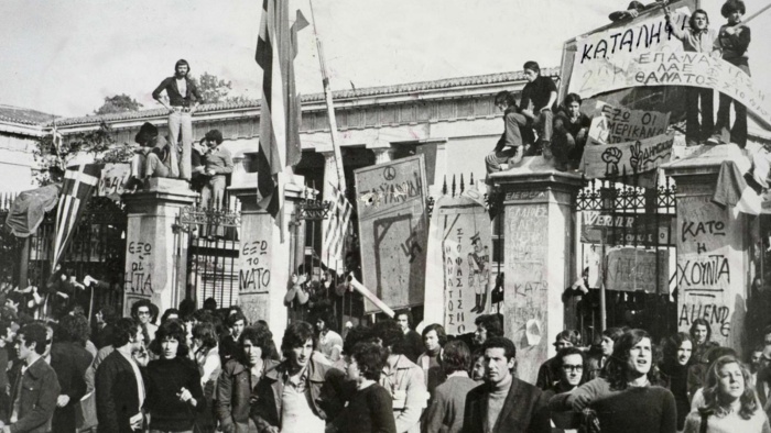 Коммунистическая партия Греции стояла в авангарде борьбы против хунты, достигшей своего апогея в ноябре 1973 года, когда началось восстание в Политехническом институте. Партия гордится своими членами и кадрами КПГ и КМГ, которые плечом к плечу с другими борцами, находясь в ссылках, тюрьмах, подвергаясь пыткам, не согнулись.