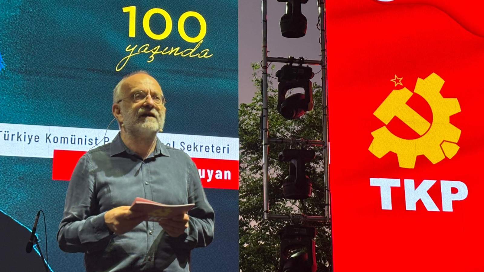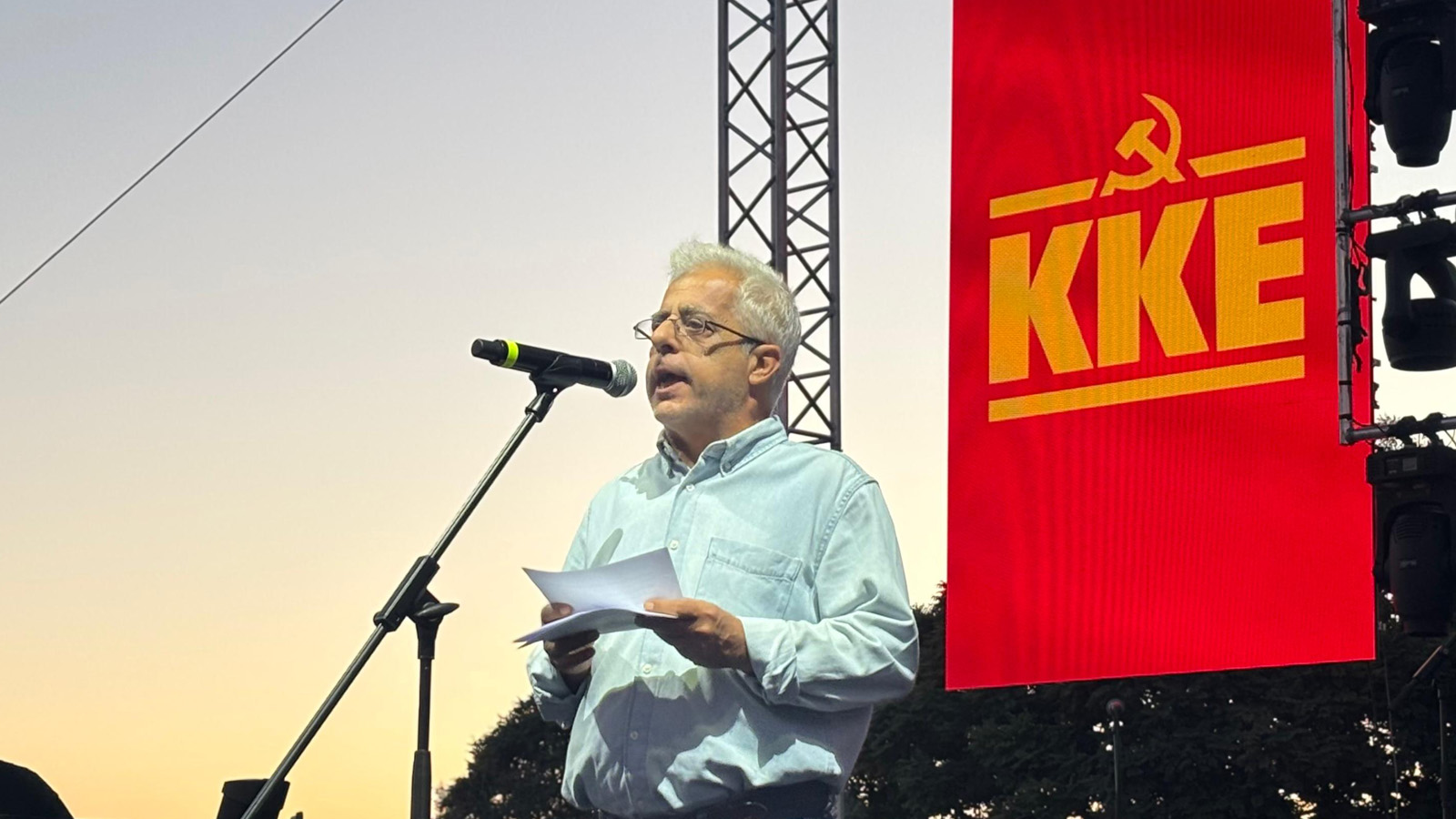 Në takim folën Nikos Sofianos, anëtar i Byrosë Politike të Komitetit Qendror të KKE, dhe Kemal Okuyan, Sekretar i Përgjithshëm i Komitetit Qendror të TKP, të cilët iu referuan veprës së madhe të Miki Theodorakis, e cila ishte e pandashme nga luftërat për çlirimin shoqëror, për miqësinë e popujve dhe luftërat e tyre sot, për Palestinën, e cila po rrjedh gjak pa pushim, për të ardhmen që popujt mund të sjellin duke besuar në forcën e tyre.